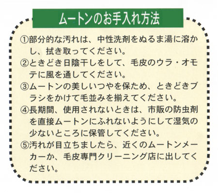 - ムートンは1平方センチあたり、5000本もの毛が密集しています。この毛の間に厚い空気の層をつくり、抜群の保温性を発揮します。