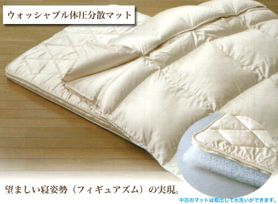 - ウォッシャブル体圧分散マットは適度な沈み込みで体型を保持するので、体圧が分散されて快適な寝心地を得ることができます。床つき感がありません。