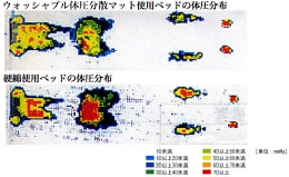 - ウォッシャブル体圧分散マットは通常の硬綿に比べて、へたりが少なく安心です。