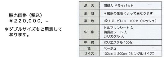 それぞれの生地の特長や性能については、販売員までお問合せ下さい。