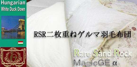 - RSR二枚重ねゲルマ羽毛布団は吸湿性・放湿性に優れており、さわやかで快適な睡眠環境を構築いただけます。